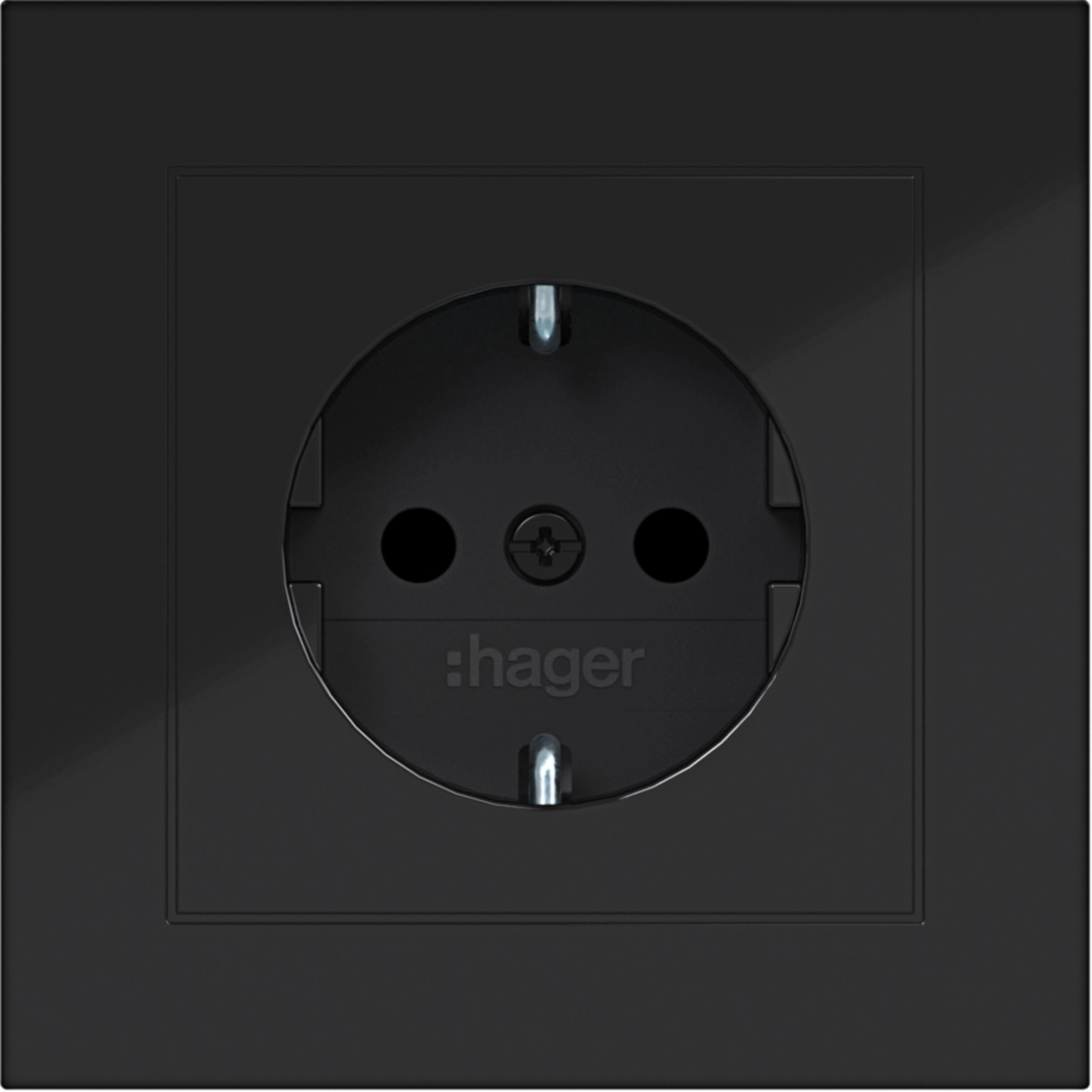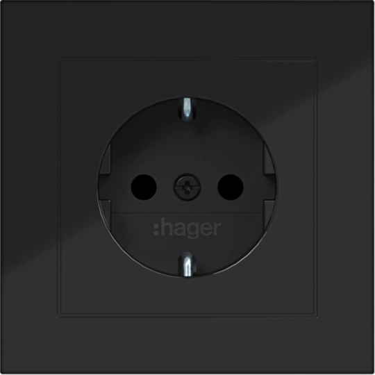 Steckd. SCHUKO m. Abdeckpl., erh. Berührungsschutz, Steckkl., A.1, n.schwarz gl