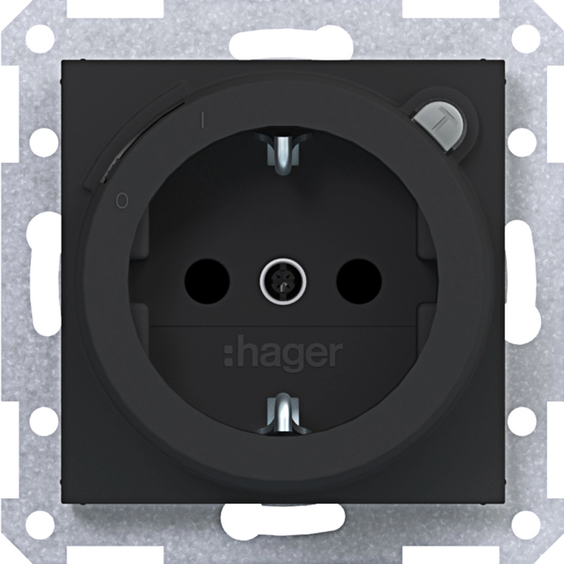 Steckd. SCHUKO m. FI-Schutzsch., erh. Ber.schutz, Schr.-Liftkl., A.x/C.x, sw mt
