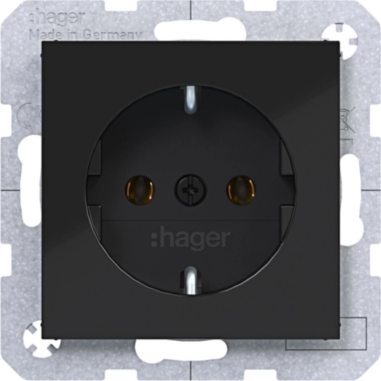 Steckdose SCHUKO, Schraub-Liftklemmen, A.x/C.x, nachtschwarz glänzend