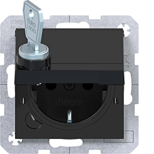 Std. SCHUKO, Klpd., arretierend, Schloss, EHBS, Schr.-Liftkl.,A.x/C.x, sw gl WAS1415BG