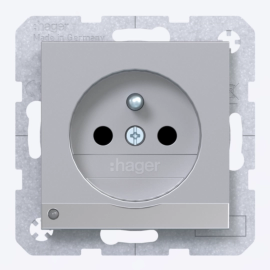 Steckd. m. Schutzk.st. u. LED-O.-Licht, erh. BS, SLKL, A.x/C.x, titan matt lack