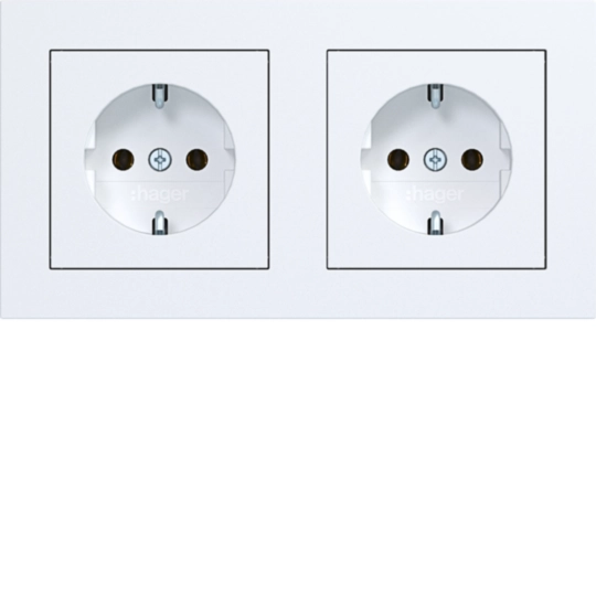 Steckdose SCHUKO 2fach mit Rahmen, verdrahtet, Steckklemmen, A.1, lichtweiß matt