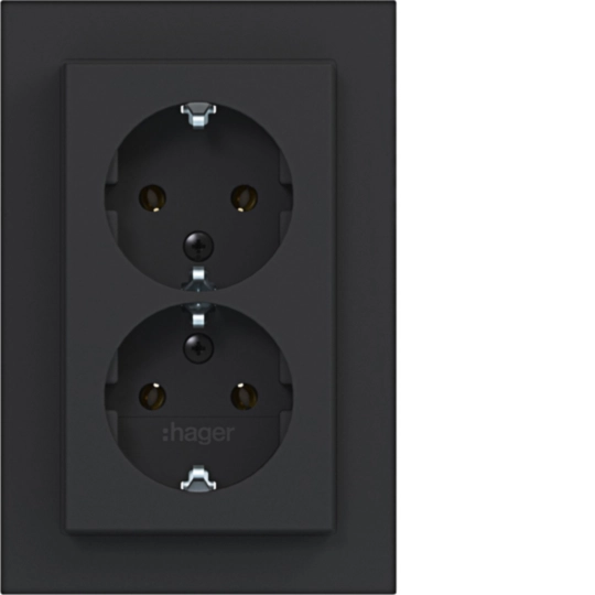 Doppelsteckdose SCHUKO mit Abdeckplatte, hoch, Steckklemmen, A.1, n.schwarz mt