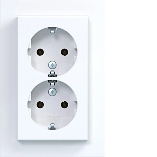 Doppelsteckdose SCHUKO mit Abdeckplatte, hoch, Steckklemmen, A.1, lichtweiß gl