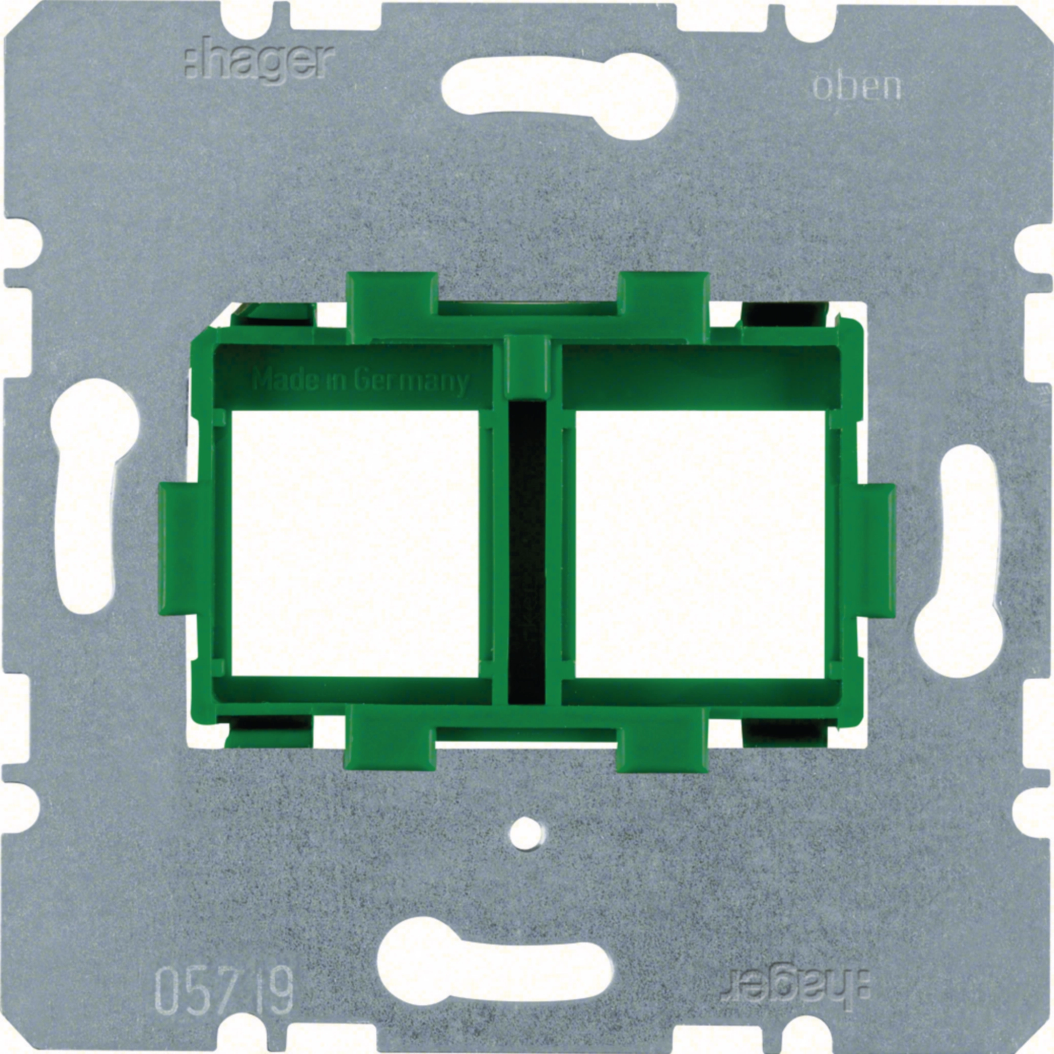 Tragplatte mit grüner Aufnahme für Modular Jacks 2fach, Modul-Einsatz UP
