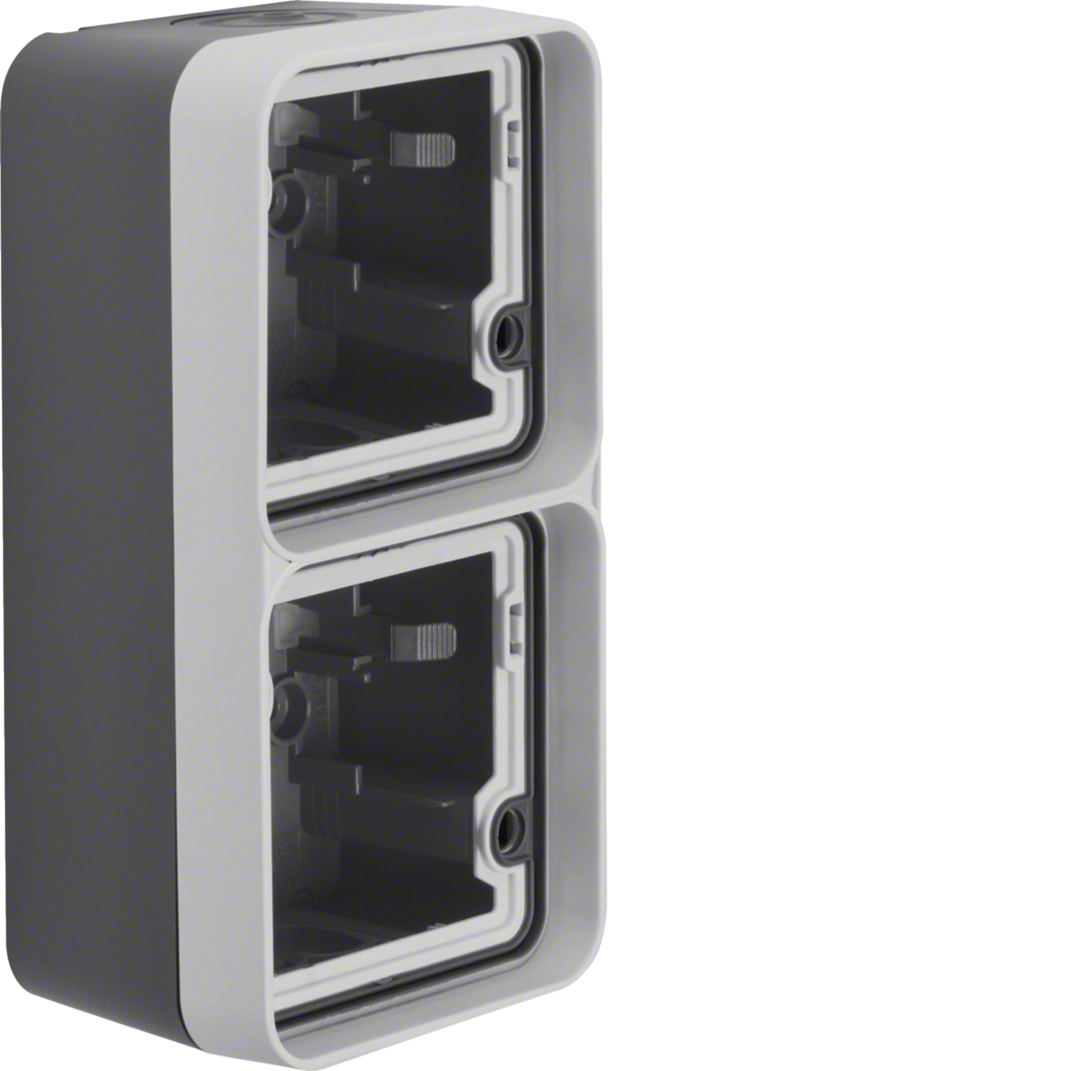 Gehäuseunterteil AP 2fach senkrecht mit Rahmen und Leitungseinf., W.1 IP55,grau