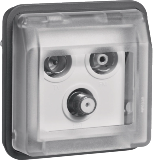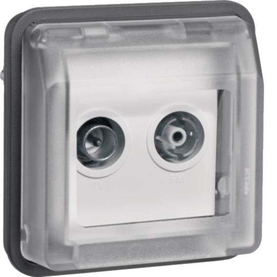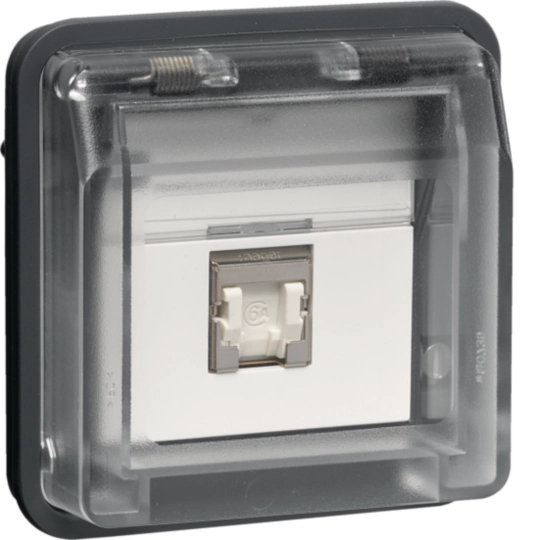 Der Schutzgrad IP55 wird nur bei Montage mit einem modularen AP/UP‑Einsatz der Produktlinie W.1 erreich.
