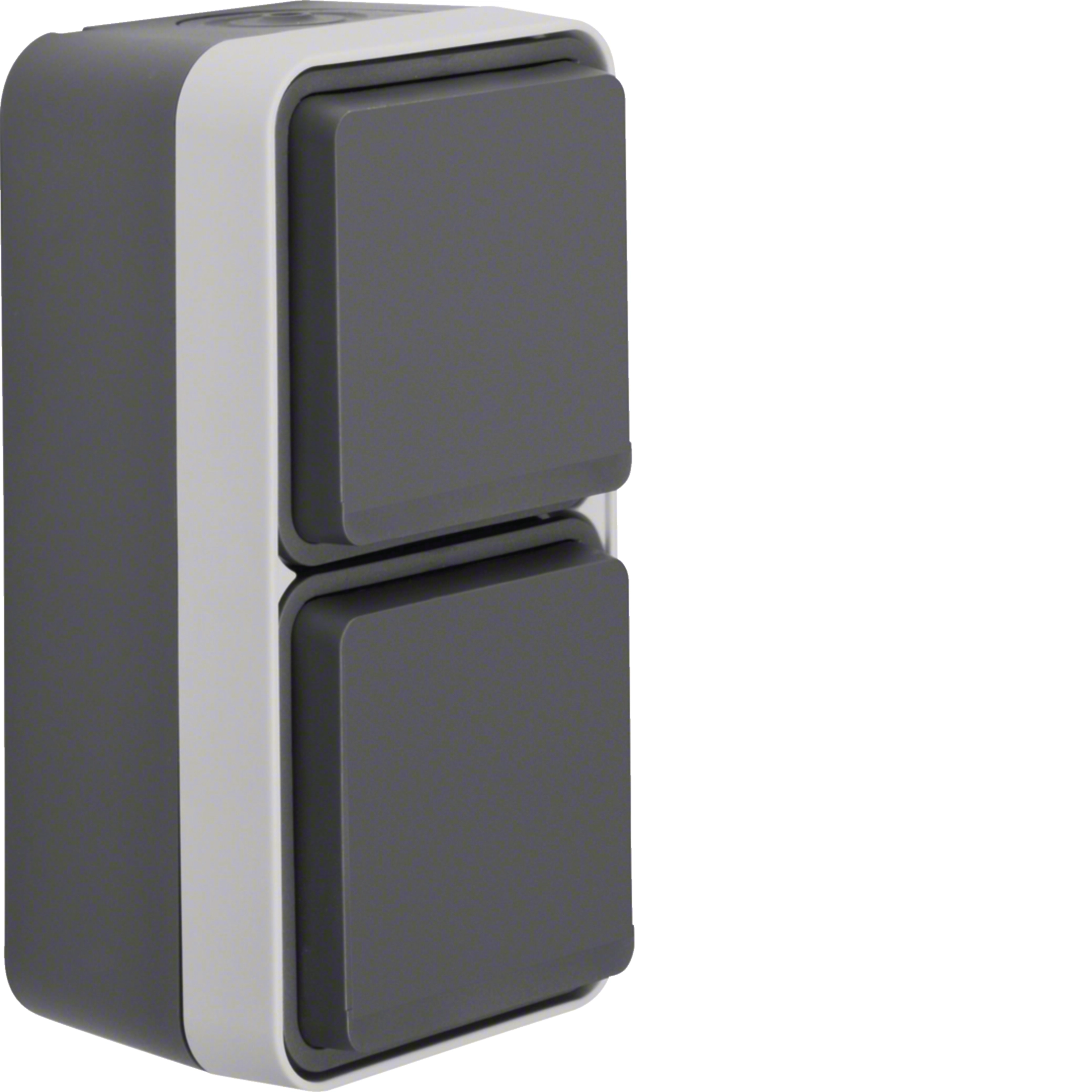 Steckdose SCHUKO 2fach senkrecht mit Klappdeckel AP, W.1, grau/lichtgrau matt