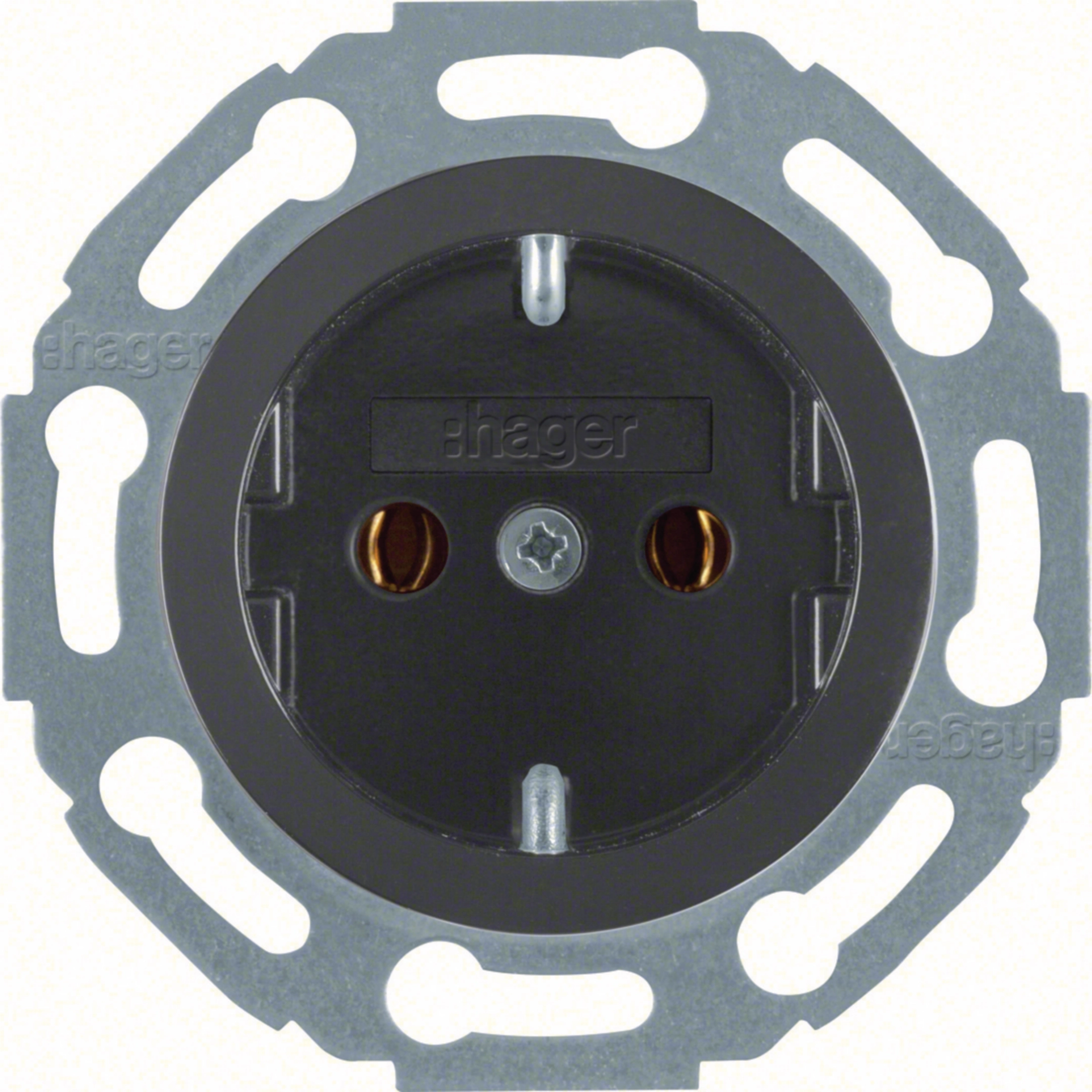 Steckdose SCHUKO, Schraubanschluss, 1930/Glas schwarz, glänzend