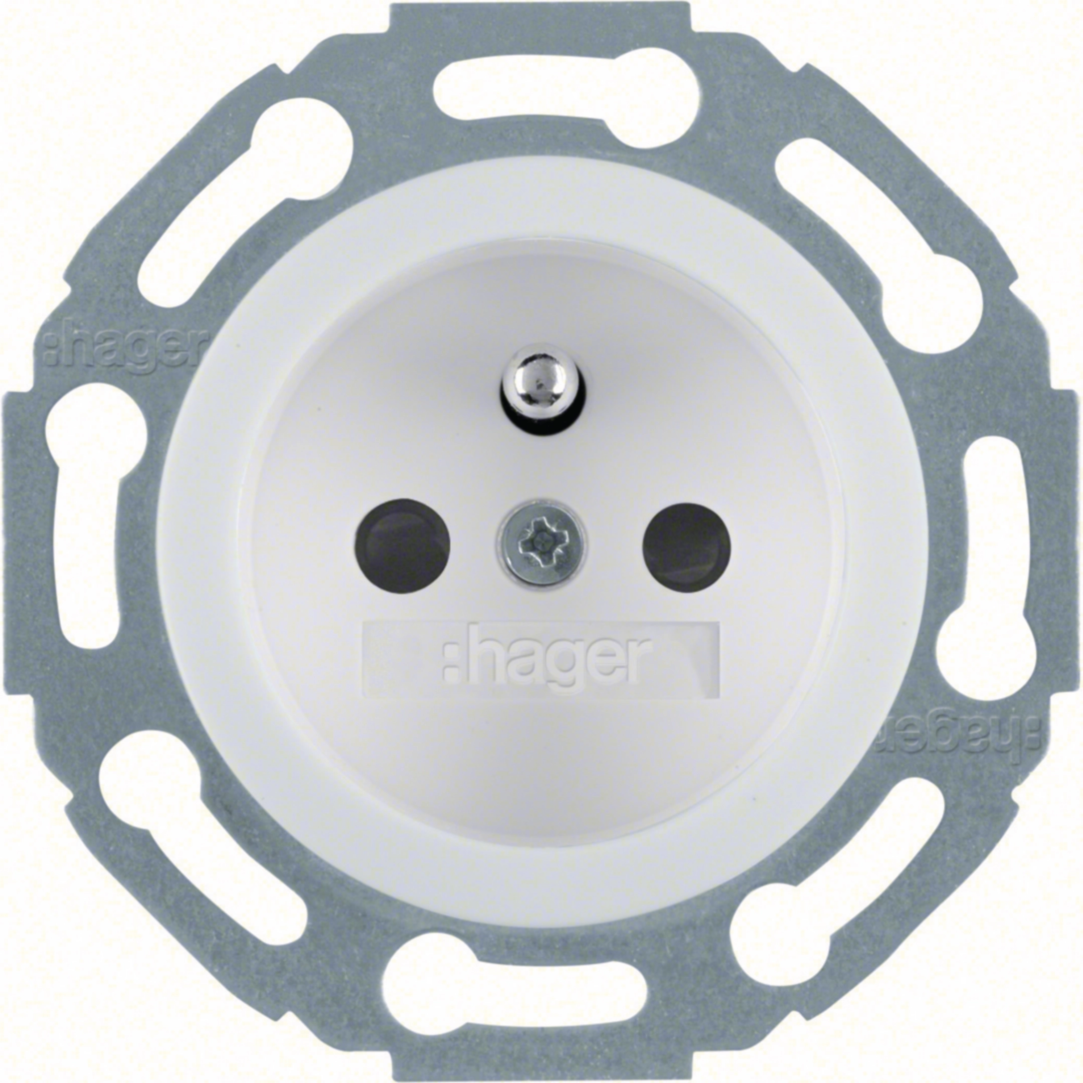 Steckdose mit Schutzkontaktstift, erh. B.schutz, Steckkl. 1930/Glas pweiß, glänz