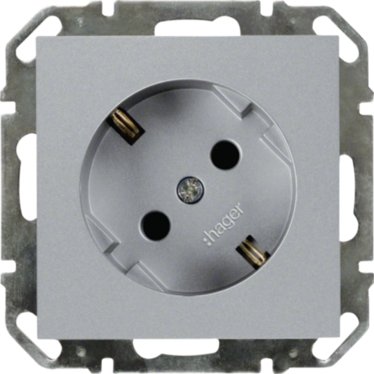 SCHUKO-Steckdose 45°, verwindungsfester, entgrateter und Oberflächen veredelter Metalltragring mit Justierhilfe. Kompakte Bauform mit geringer Einbautiefe und komplett versenkten Befestigungskrallen. Keine elektrische leitende Verbindung zwischen Metalltragring und Befestigungskrallen. Krallenbefestigung mit Schnell-Gang-Gewindeschraube und Rückführungsmechanik. Passend für kallysto Designlinien.