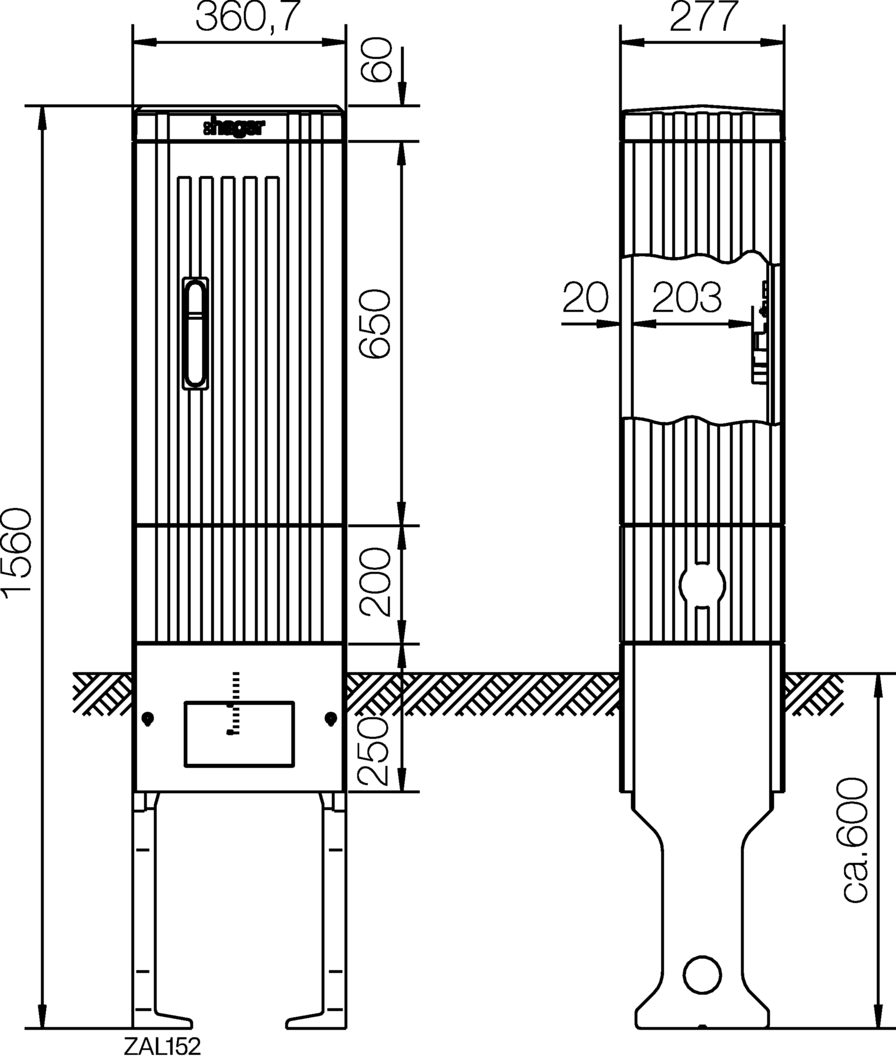 Verteilersäule Baureihe 152, leer, 1560x360,7x277mm (HxBxT) ZAL152