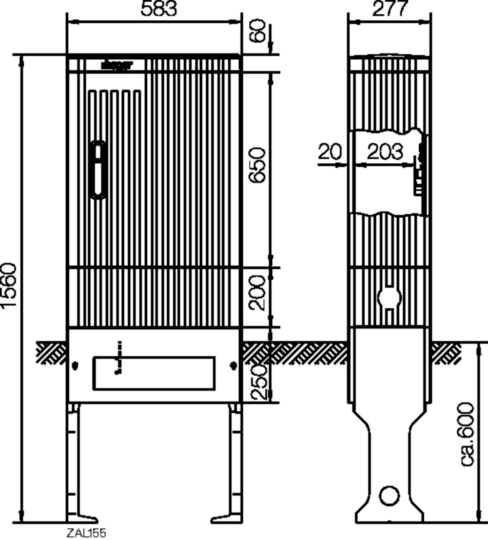 Verteilersäule Baureihe 155, leer, 1560x583x277mm (HxBxT) ZAL155