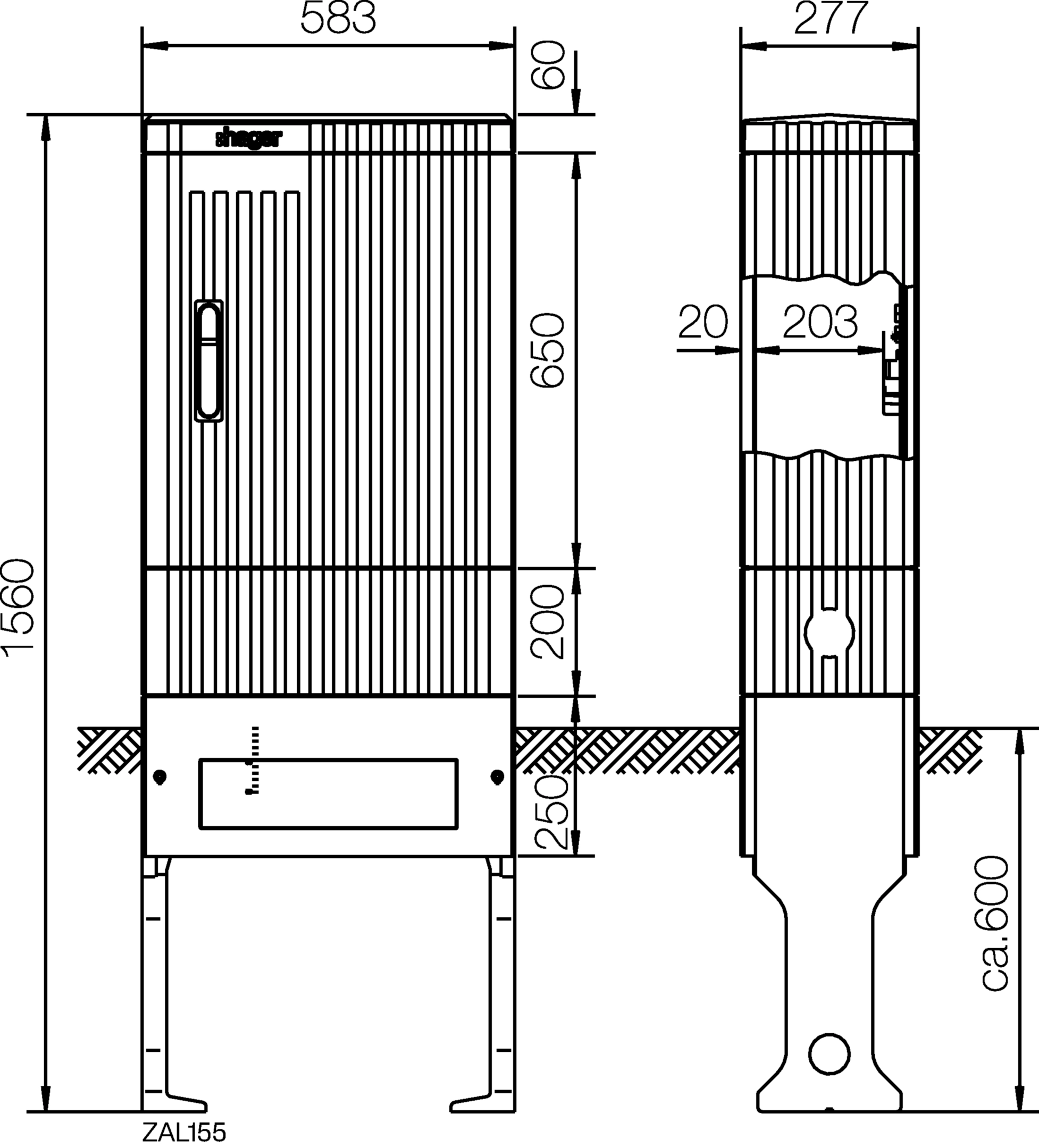 Verteilersäule Baureihe 155, leer, 1560x583x277mm (HxBxT)