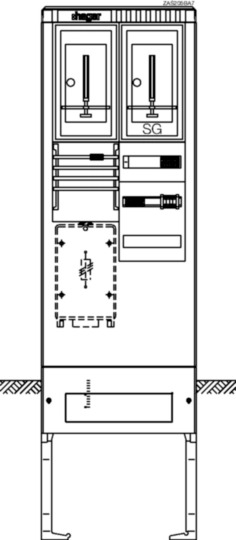 Zähleranschlusssäule, UniversZ, 1 Zählerplatz, 1 TSG, 4-Leiter, 2010 x 583 mm ZAS205BA7