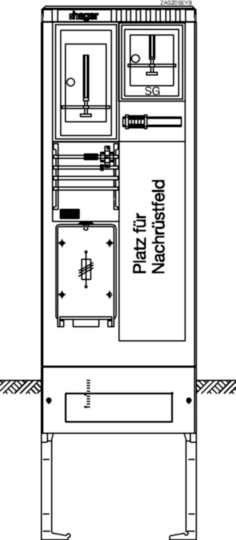 Der Einbau besteht aus schutzisolierten Zählerfeldern nach DIN VDE 0603-1 für Zähler und Tarifschaltgerät (TSG). TSG-Plätze können mit einer IP54-Abdeckung nachgerüstet werden. Je nach Ausführung sind Leerplätze als Nachrüstfelder vorgesehen. Eingrabsockel und Zähleranschlusssäule bilden eine Einheit. Ein Bodenrost ist empfohlen. Zur Betauungsvermeidung ist der Sockel bis zur Höhe der Kabelbefestigungsschiene innen mit Sockelfüller aufzufüllen.