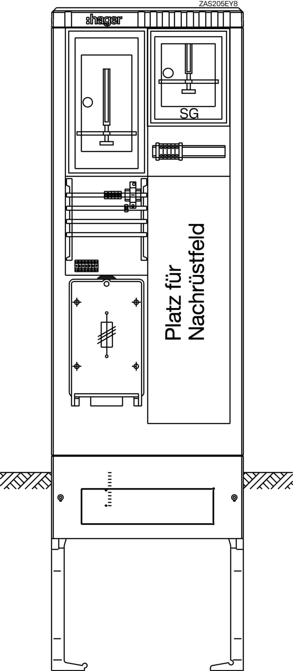 Zähleranschlusssäule 205, universZ, 1 ZP, 1 SG, 3-Punkt, 4-pol, Leerplatz, HAK ZAS205EY8