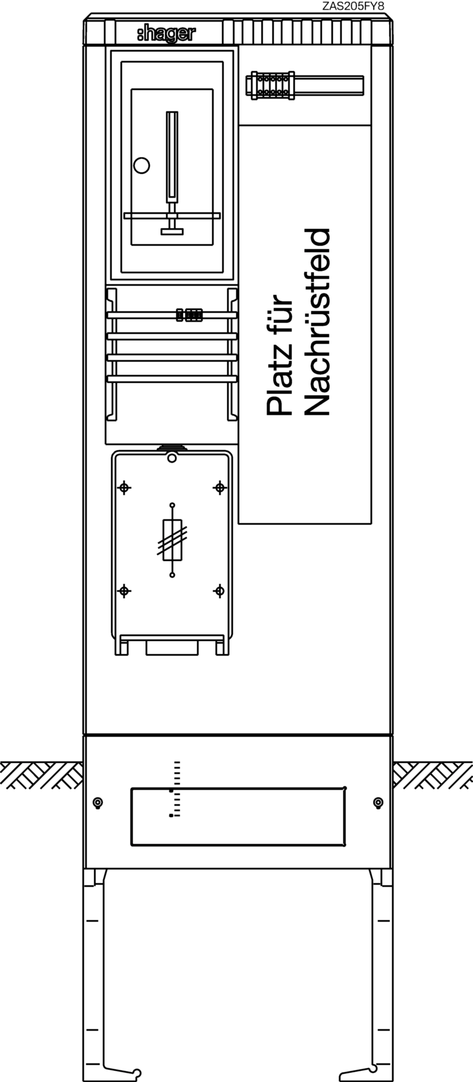 Zähleranschlusssäule 205,universZ,1 Zählerplatz,3-Punkt,5-polig,Leerplatz,HAK ZAS205FY8