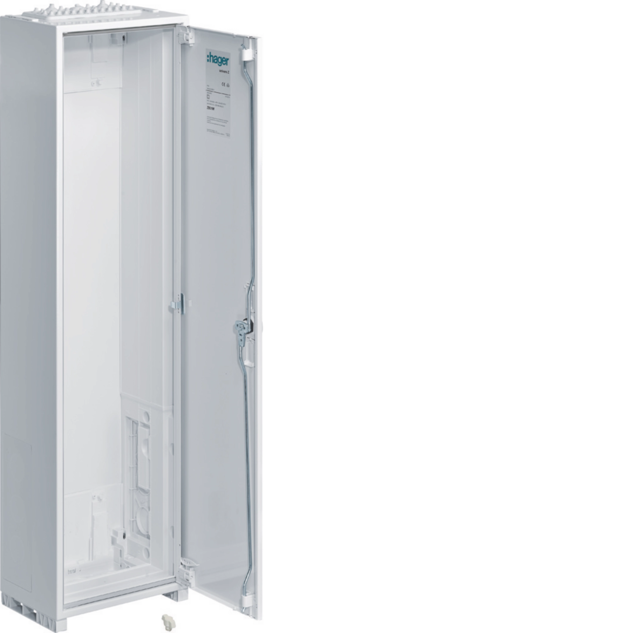 Schrankgehäuse nach DIN VDE 0603-1 zur Aufputz, Unterputz oder teilversenkter Montage. Zum Aufbau einer Zählerverteileranlage bis 355 A, Bemessungsspannung 230/400 V 50 Hz. Schutzart IP31 (IP44/IP54 nach DIN VDE 0470-1), Schutzklasse II schutzisoliert, Schutzart IP3X hinter der Tür. Bestehend aus Schrank mit Tür aus pulverbeschichtetem, eingebranntem, stabil profiliertem 1 mm dickem Stahlblech. Innenauskleidung komplett aus Kunststoff. Leitungseinführungen oben und unten durch eingebaute Kunststoffflanschplatten, rückseitige Vorprägung im Kunststoffteil und seitlich eingebaute Kunststoff-Flanschplatten im Bereich des NAR (geeignet als Sammelschienendurchführung), des RfZ (nur bei Bauhöhe 1100 mm) und des AAR.