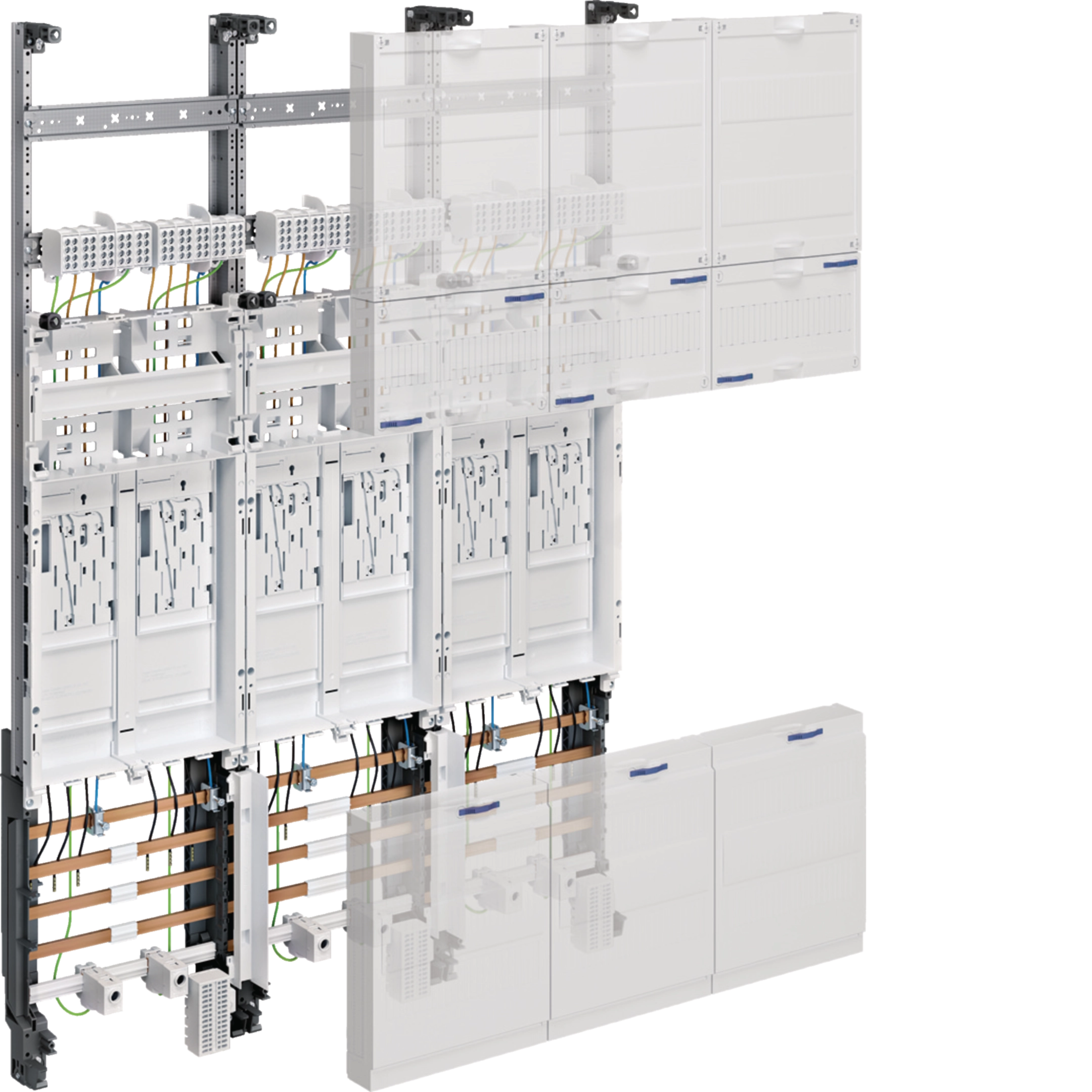 Komplettfeld / Einbausatz univers Z für eHZ zum Aufbau von Zählerplätzen nach DIN VDE 603-1, Schnellmontage im Schrank durch Rast-System, bestückt und verdrahtet nach VNB TAB-Bestimmungen für eHZ-Zählerplätze.