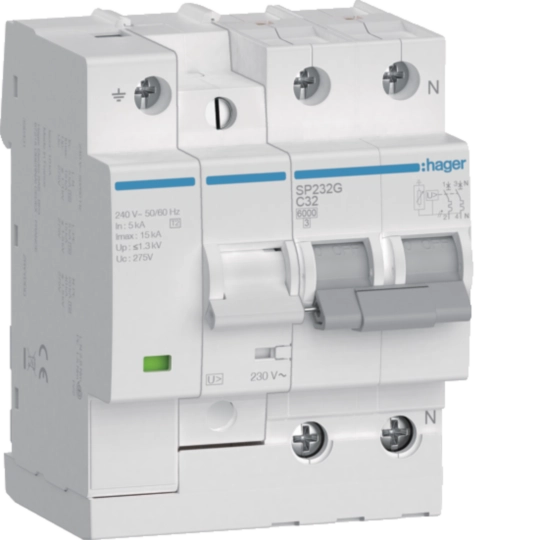 Protección comb. contra sobretensiones permanentes y transitorias 2P 6kA C32A 4M SP232G
