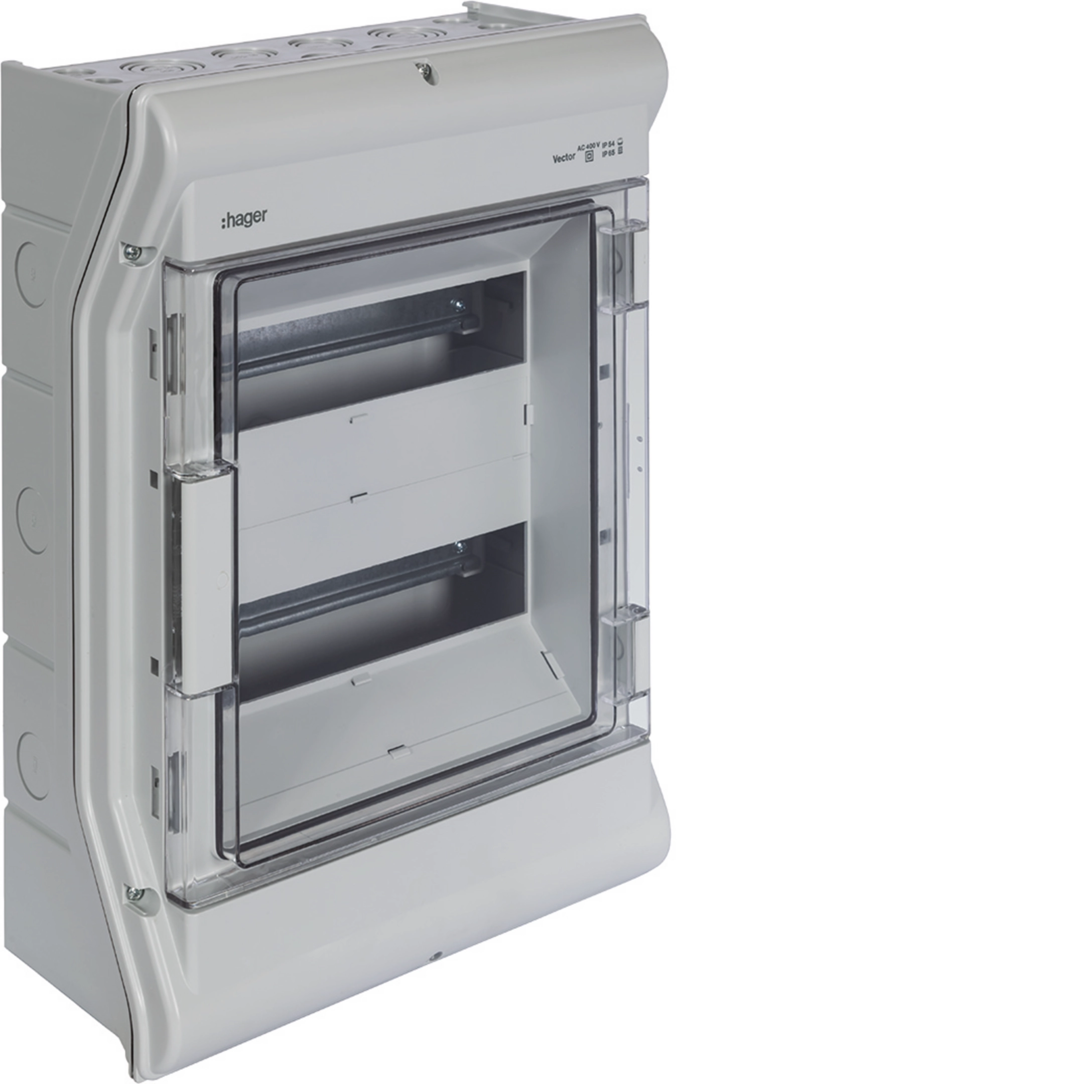 Caja de sup. estanca vector VE, IP65, 2 filas,24M, puerta transparente
