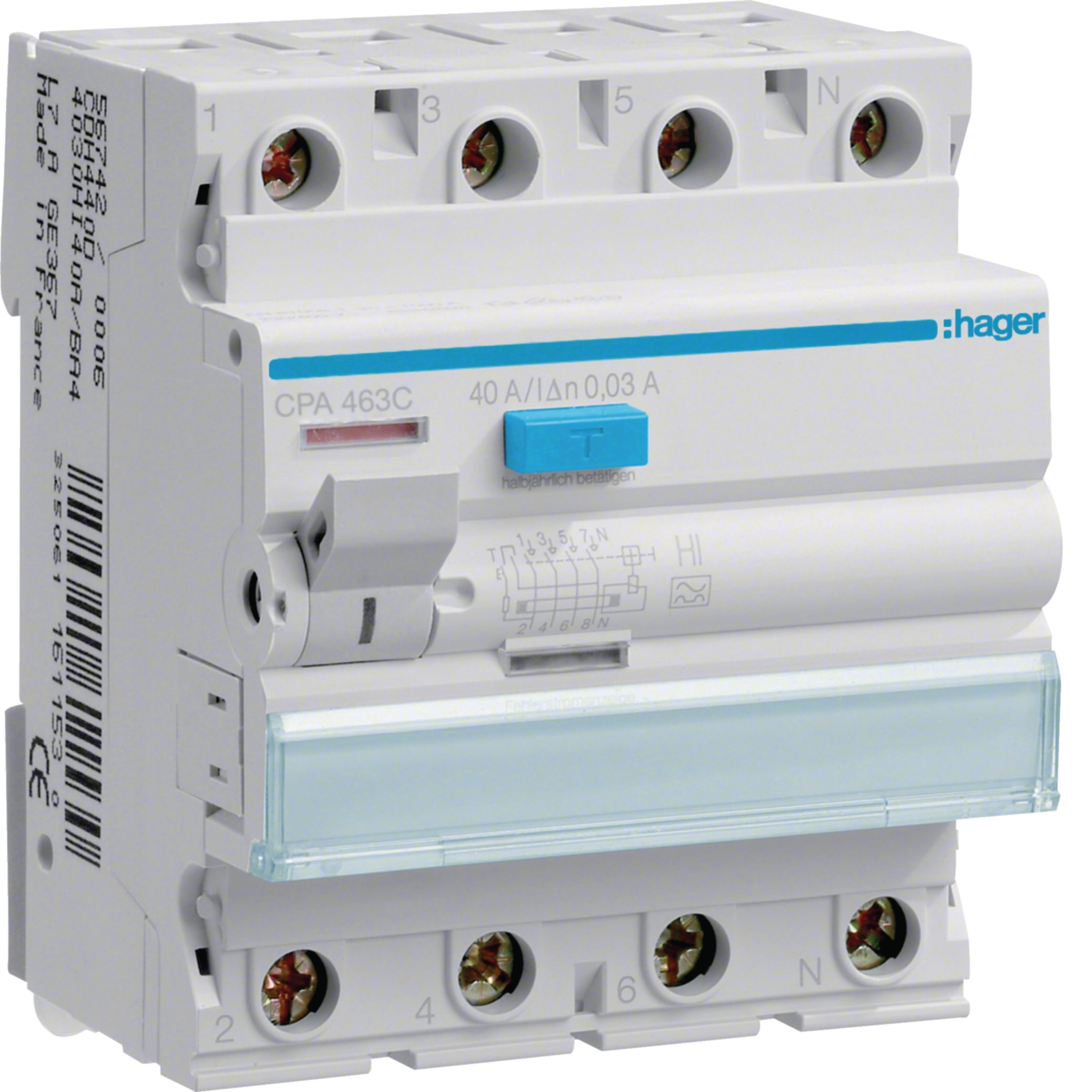 Interrupteur différentiel Hager RCCB (RCD) 4P 400V 0.03A type A HI 40A 4UM CDH440C