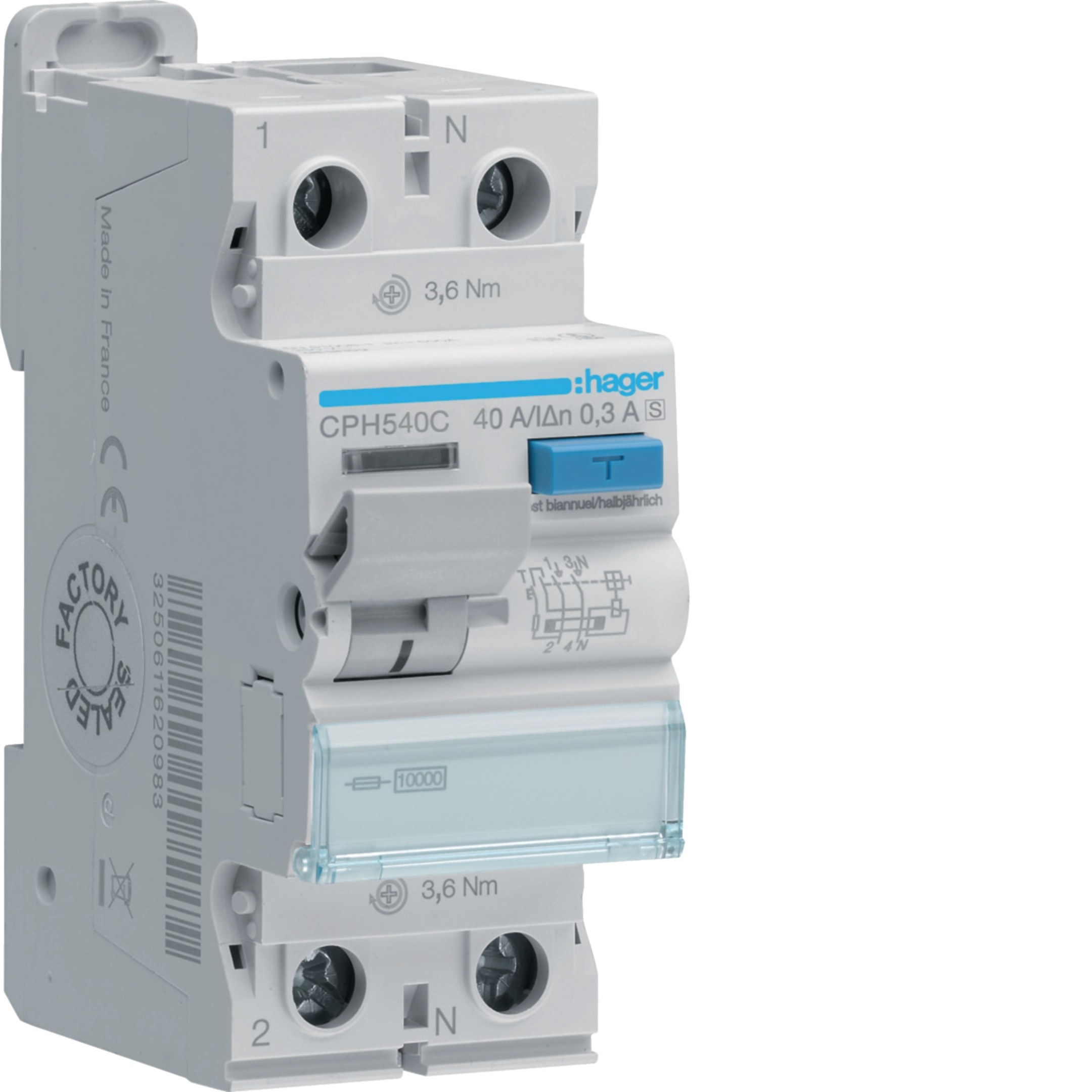 Interrupteur différentiel Hager RCCB (RCD) 2P 230V 0.3A type A HI S 40A 10kA 2UM CPH540C