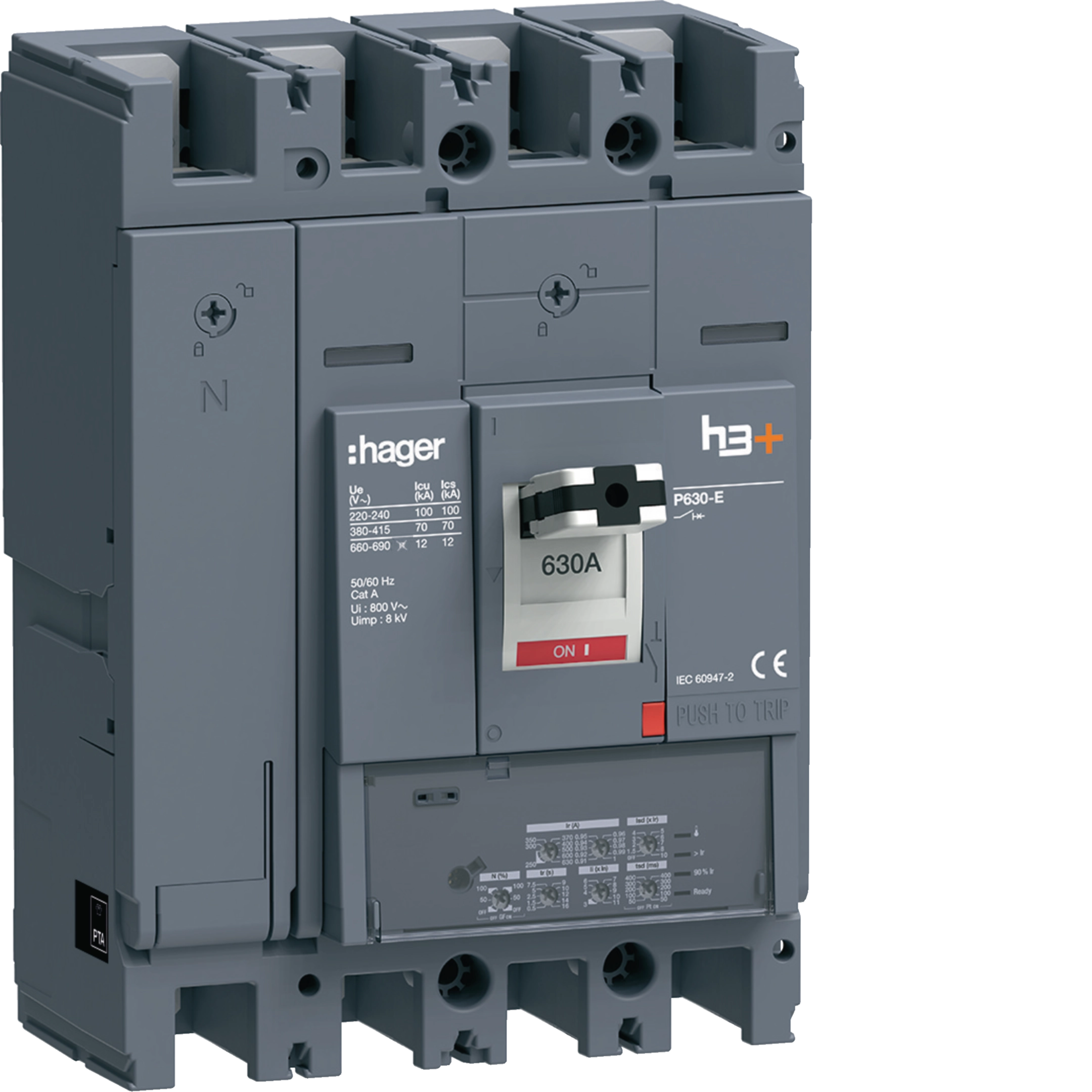 Disjoncteur Boitier Moulé h3+ P630 LSIG 4P4D N0-50-100% 630A 70kA FTC