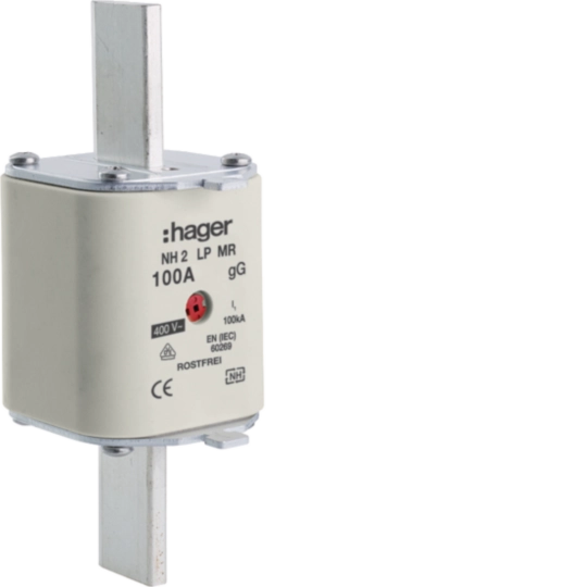 Fusible HPC Hager DIN2 400VAC 100A gG/gL avertisseur central inoxydable NH2LP100MR