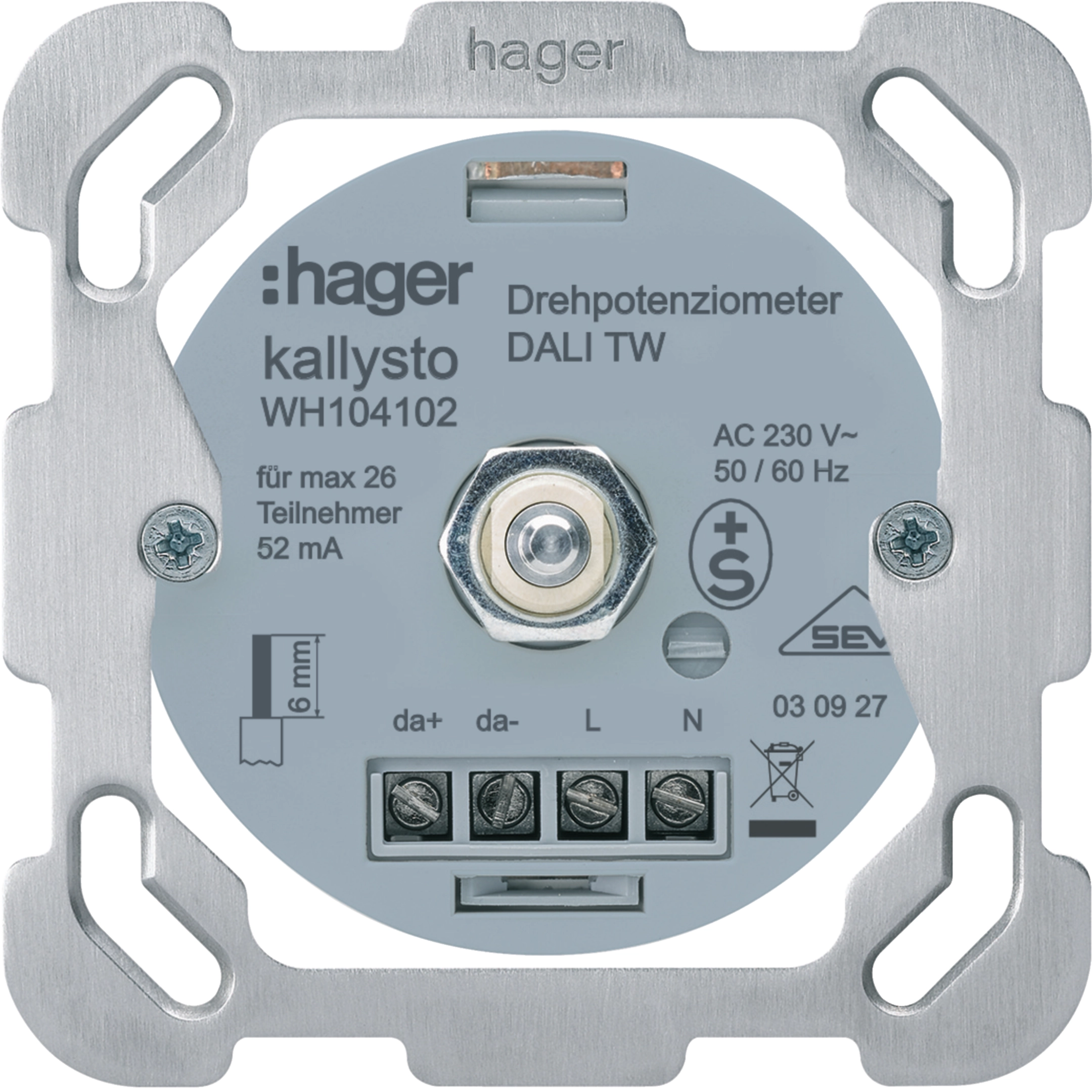 Intérieur pour potentiomètre de puissance DALI TW Hager avec plaque de fixation WH104102F