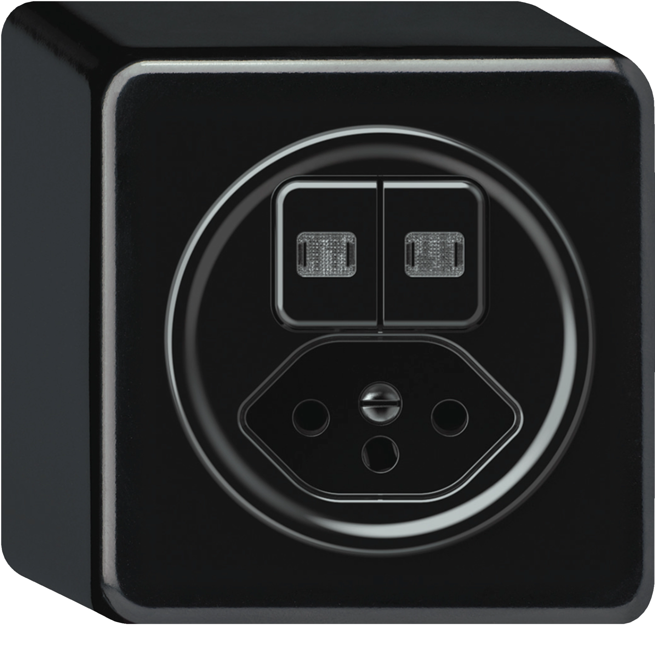 origin apparent petite combi 2x bouton-poussoir 2x éclairé + prise type 13, noir WH15881205Q