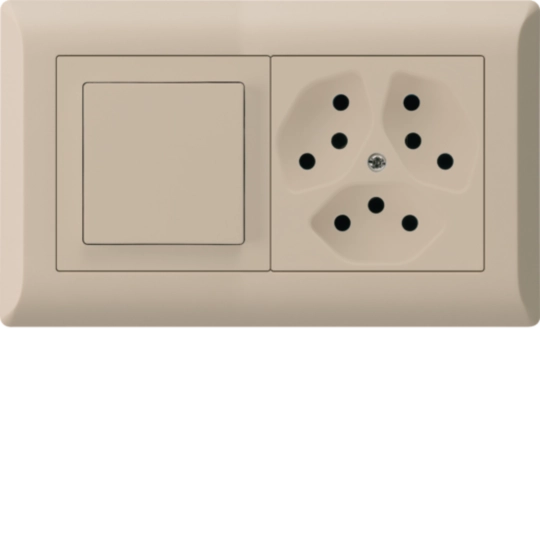WH25916507Ckallysto.line encastré Gr.1x2 complet: Prise 3x type 13 / Interrupteur S3 Beige