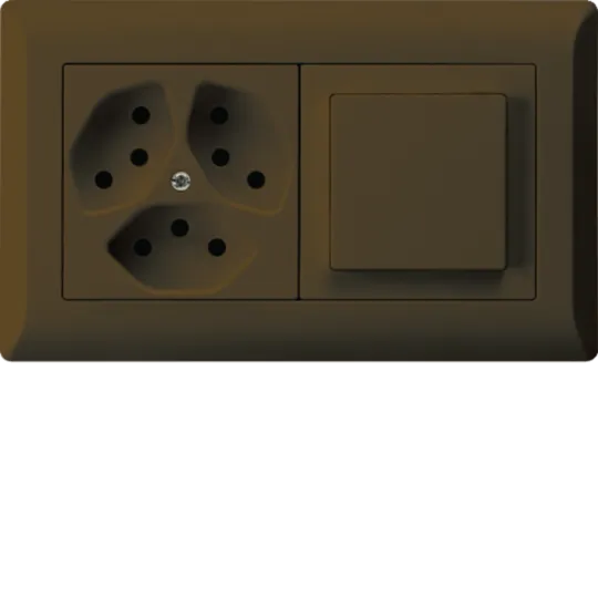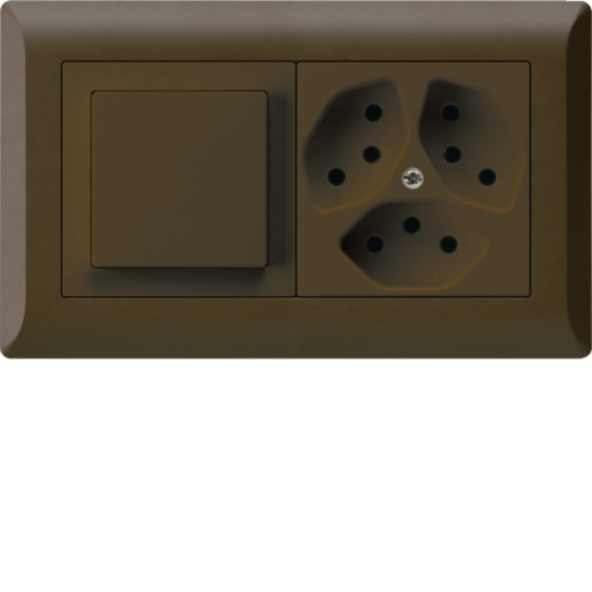 WH25916509Ckallysto.line encastré Gr.1x2 complet: Prise 3x type 13 / Interrupteur S3 Brun