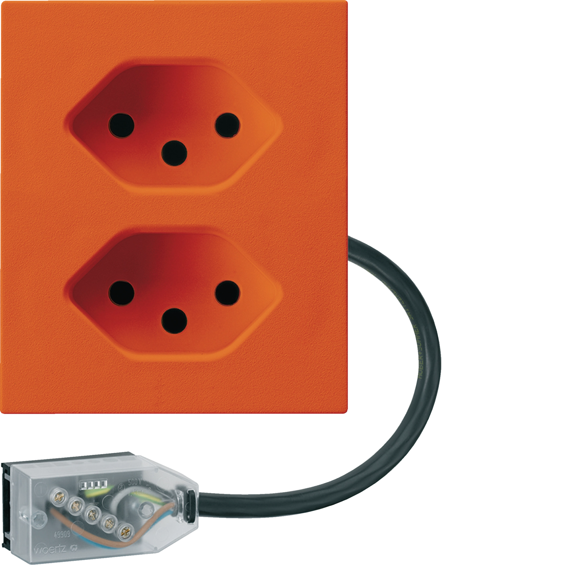 Prise FLF Hager 2×type 13 avec adaptateur Power L3 D orange WH37686106D