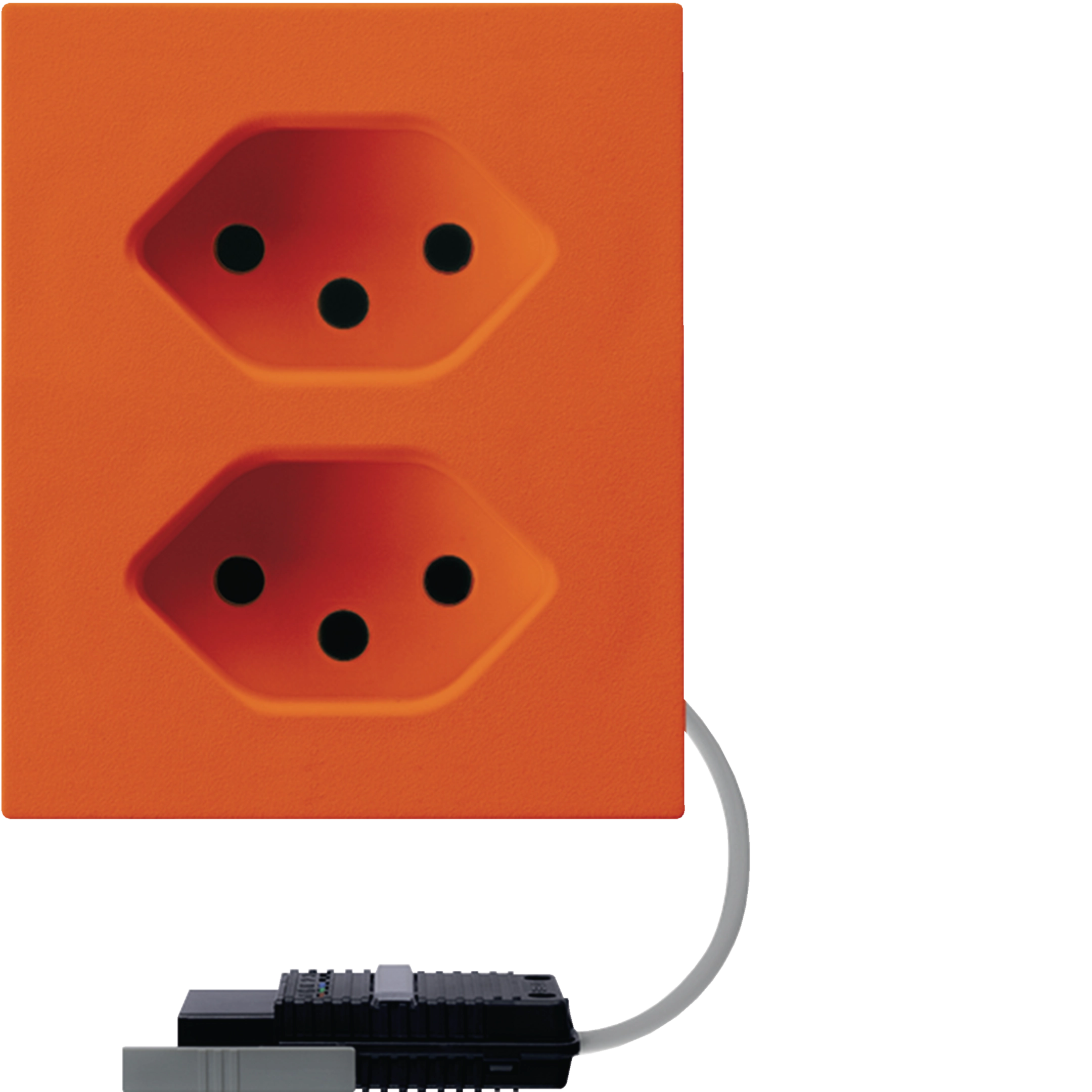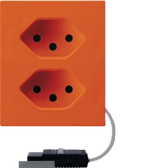 Prise FLF Hager 2×type 13 avec adaptateur câble rond L3 D orange WH37686406D