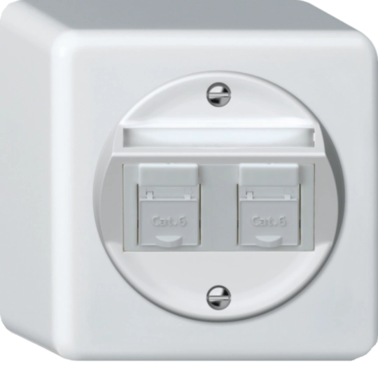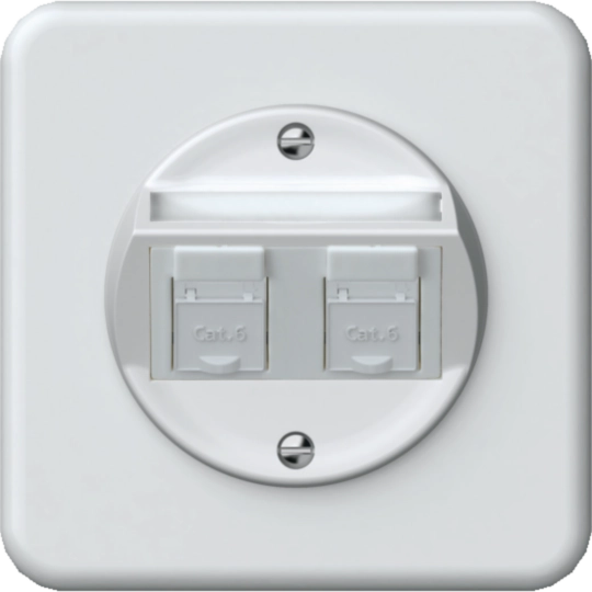 origin insert avec pl. de fix. 2x RJ45 Cat.6 UTP avec sortie oblique blanc WH45290200B