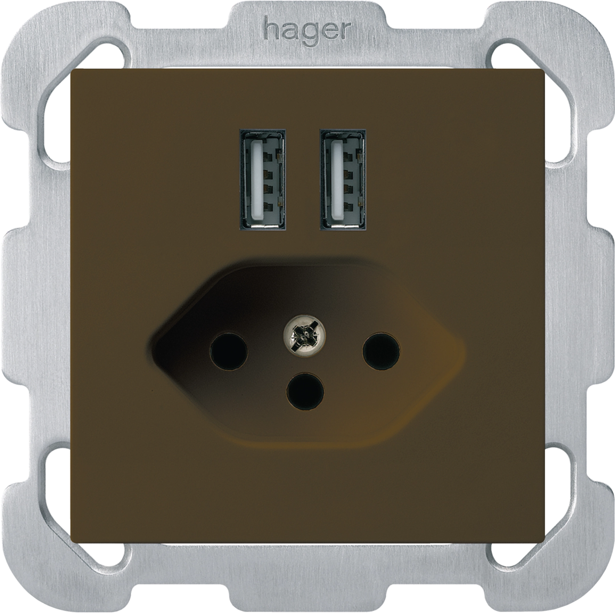 kallysto encastré: 2x USB-A Smart IC 12W + T13 + plaque de fixation + face Brun