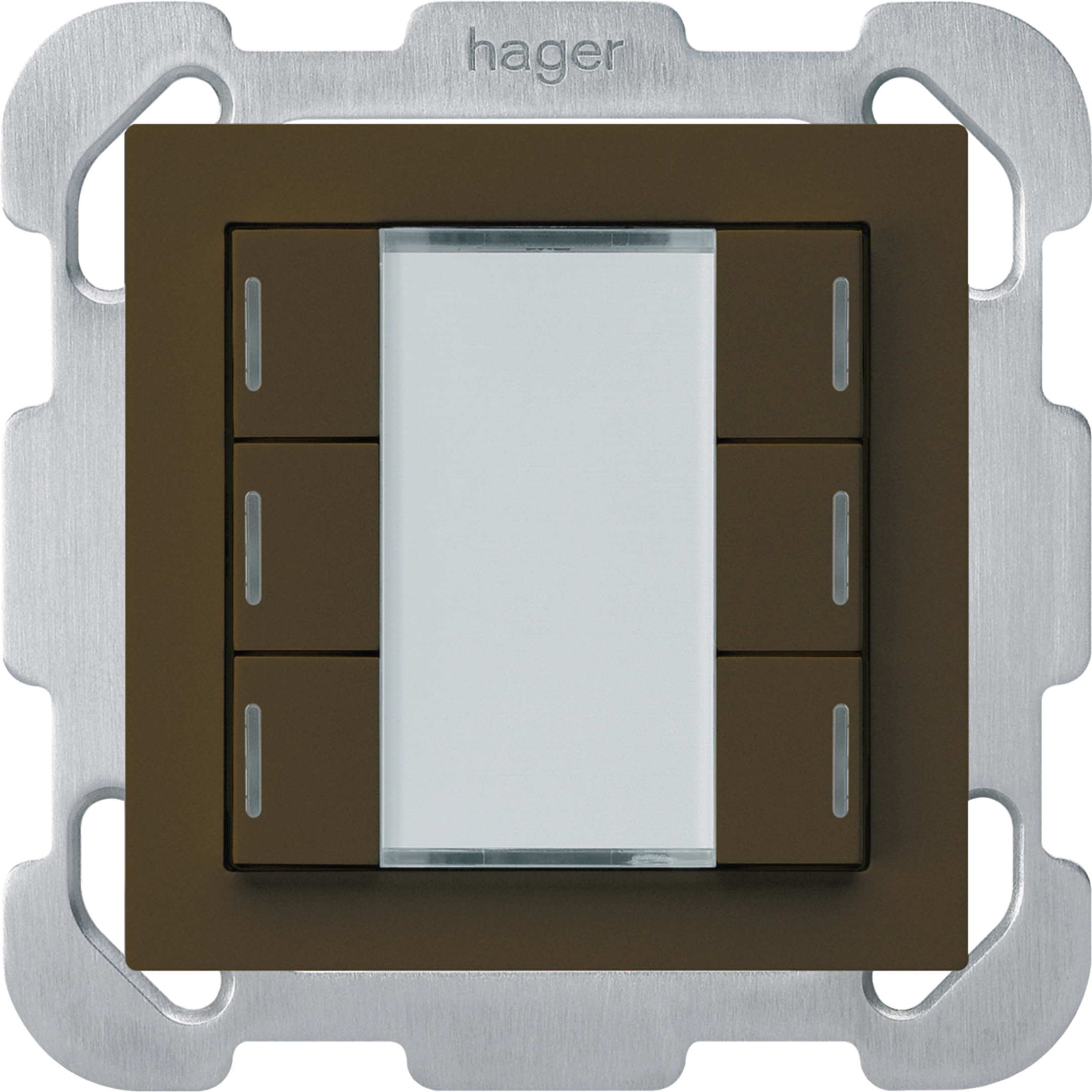 kallysto ENC + KNX: 6x poussoir + LED d'état RJB + plaque de fixat. + face Brun