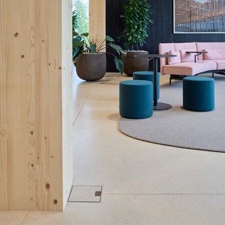 Les solutions de sol permettent un câblage flexible et efficace dans chaque pièce ainsi que sous chaque surface et s’intègrent parfaitement dans les nouveaux locaux. Des raccordements, des prises et des câbles pour l’électricité, les données et le multimédia sont intégrés de manière sûre et discrète dans le sol. Ces solutions bien pensées assurent une alimentation en énergie fiable, sans interruption et confortable dans tout le bâtiment.