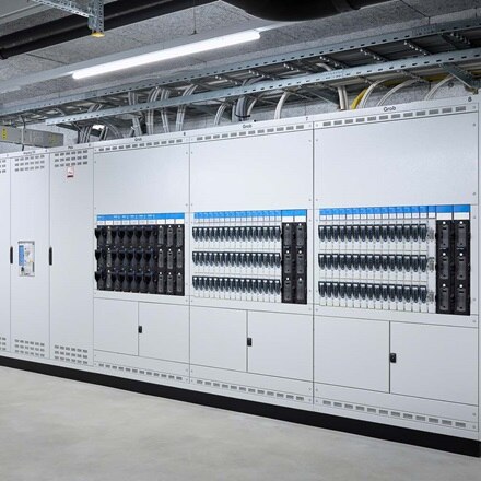 Le système variable de composants weber.vertigroup avec réglettes coupe-circuits sectionnables à coupure en charge HPC, réglettes sectionnables et supports de jeux de barres a permis un montage rapide sur les jeux de barres.