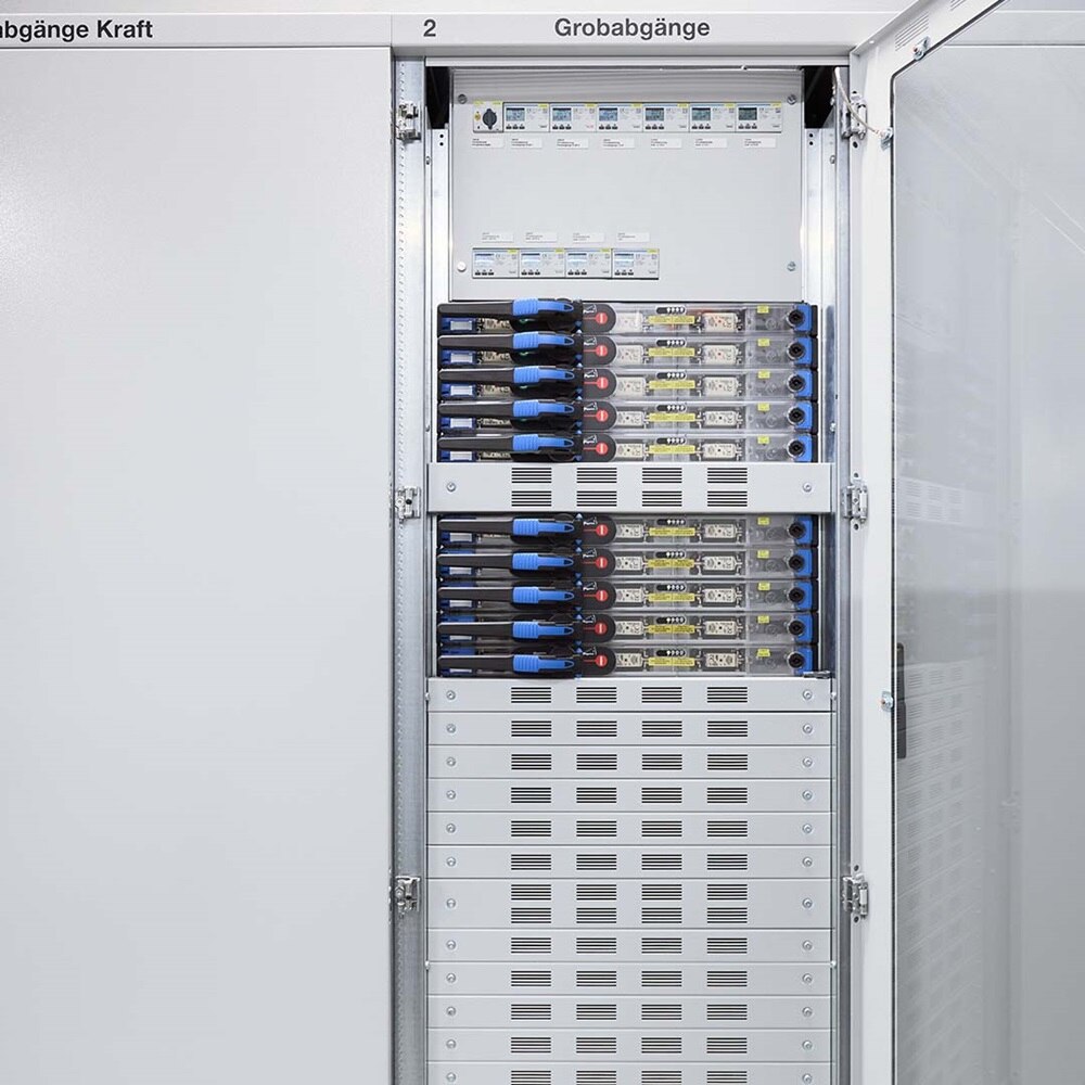 Une distribution sûre de l’énergie est assurée par le système de distribution d’énergie unimes H en combinaison avec le système de jeux de barres unibar H et les disjoncteurs h3+.