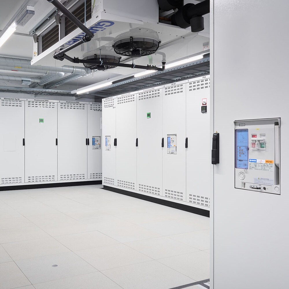 La centrale énergétique WWZ à Unterfeld a été réalisée avec des systèmes de distribution d’énergie de Hager. Il convient de souligner tout particulièrement l’étroite collaboration dès le début du développement du projet. Hager a accompagné le projet à partir de la phase SIA 31 – de l’élaboration du concept, y compris les prévisions de coûts, en passant par l’appel d’offres, jusqu’aux calculs de réseau pour les réglages des interrupteurs, inclus dans la livraison et réalisés en collaboration avec Gruner. La solution globale a été élaborée et suivie de manière exhaustive par Hager. Le projet s’est déroulé sur une période d’environ quatre ans.