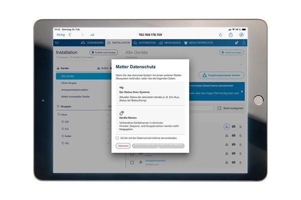 Le support technique pour domovea V1 (TJA450, TJA451) prendra fin en décembre 2025. À partir de ce moment-là, il ne sera plus possible de contrôler à distance le système Smart Home si vous êtes en déplacement, ni de télécharger l’application sur de nouveaux appareils. Pour garantir la fonctionnalité et la disponibilité du système, nous vous recommandons de migrer vers domovea plus (TJAS471).