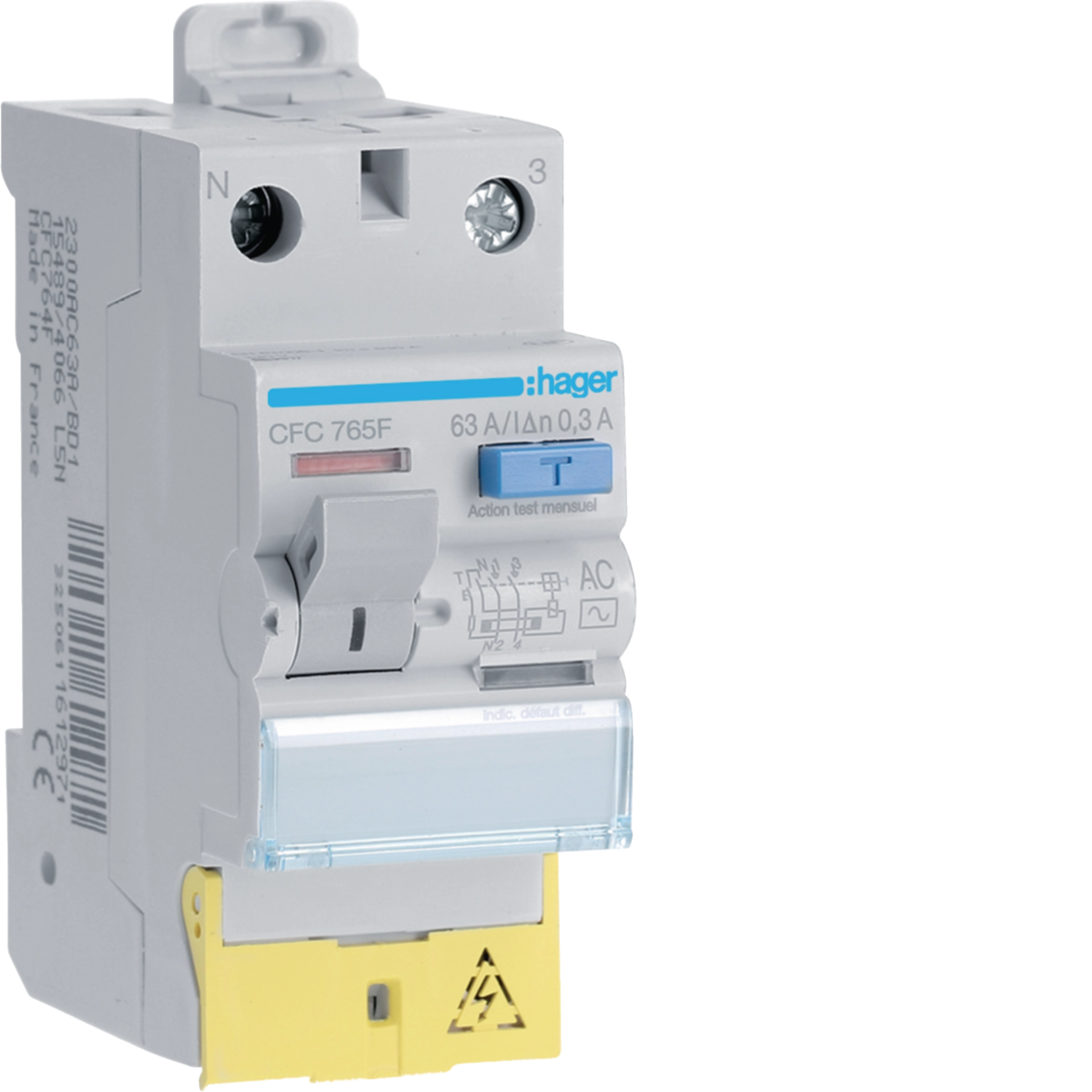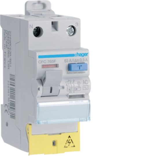 Interrupteur différentiel 1P+N 63A 300mA type AC à bornes décalées 50/60HZ CFC765F