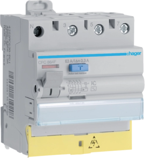 Interrupteur différentiel 63A 300mA 3P+N type AC 50/60Hz à bornes décalées CFC864F