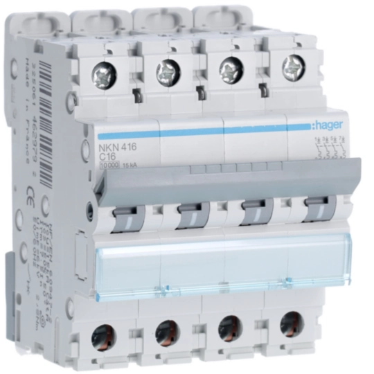 Disjoncteur 16A 4P 10-15kA Courbe C 4modules NKN416