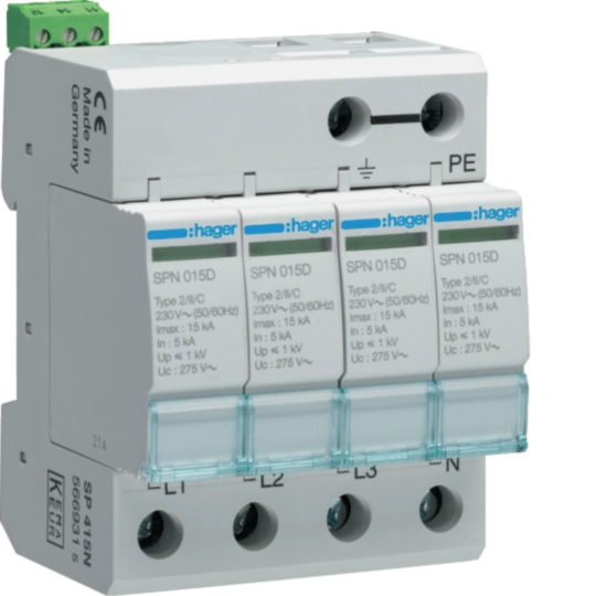 Parafoudre 4P débrochable 15KA type 2 avec voyant fin de vie SPN415D