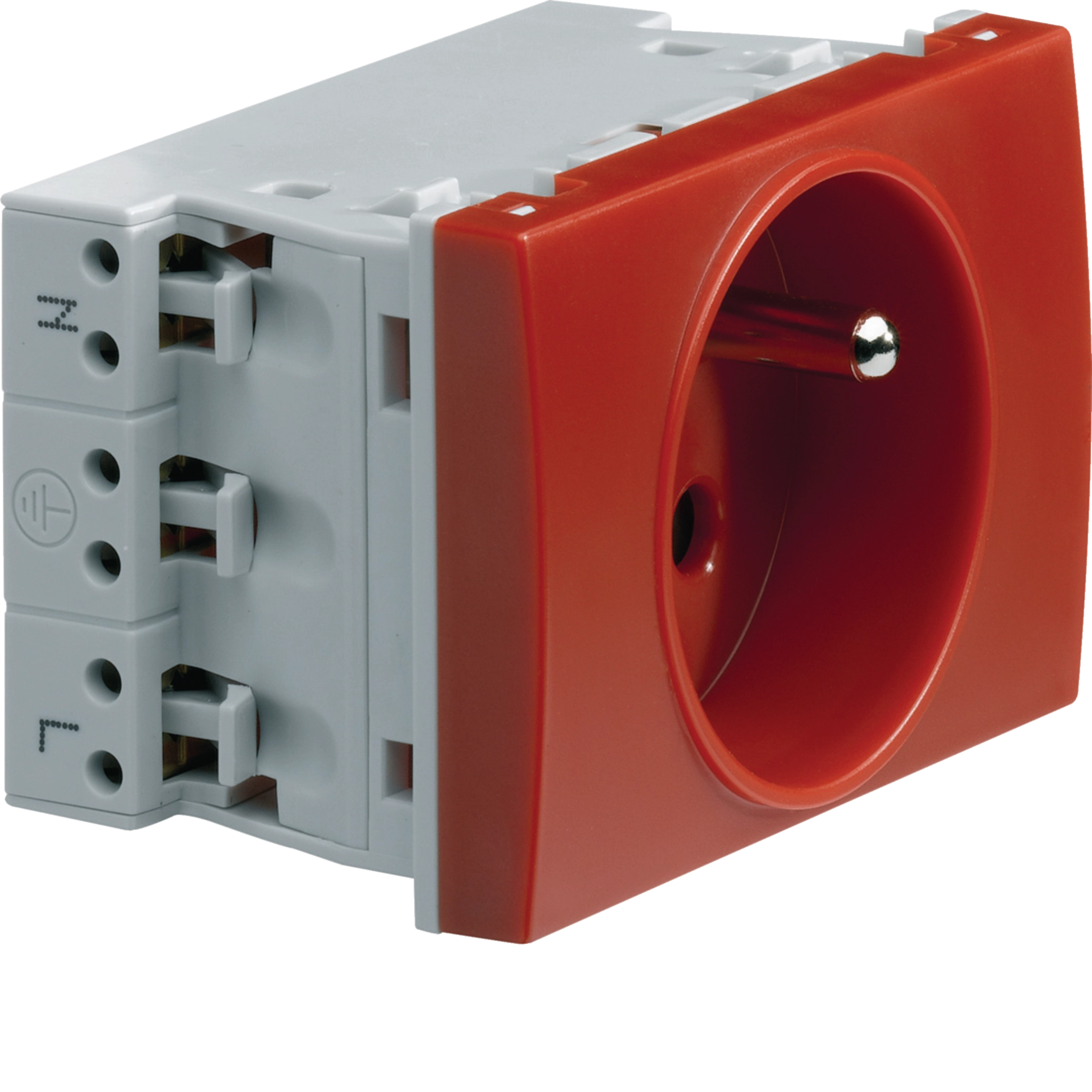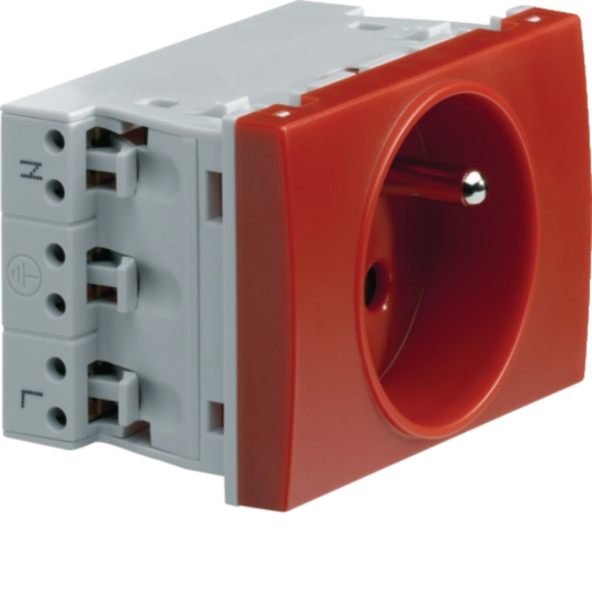 Prise de courant 2P+T Systo spécial goulotte 16A 250V détrompée 2 modules Rouge