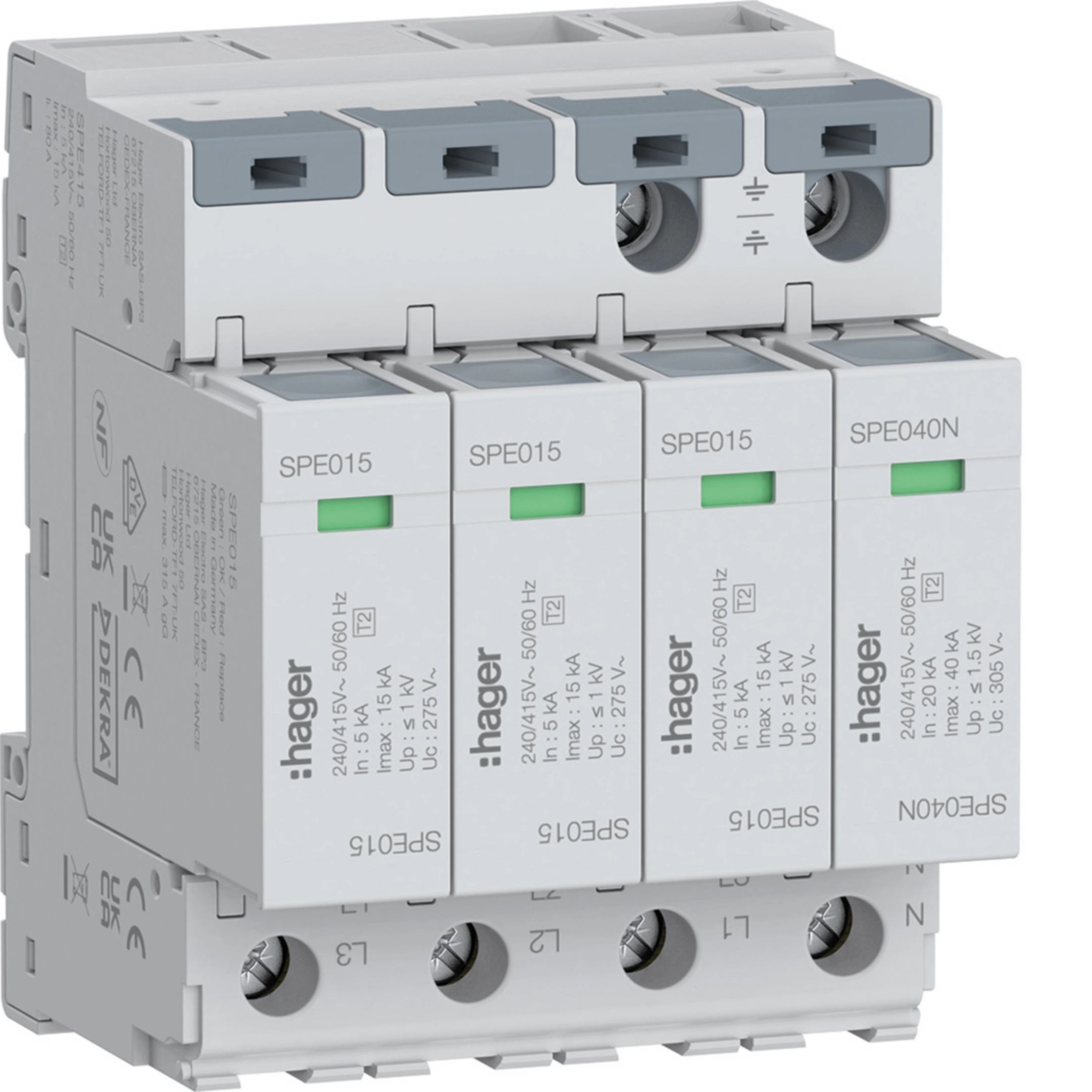 Μέγιστη εκφόρτιση (Imax) L-N(PEN)/N-PE15 kA, 40 kA